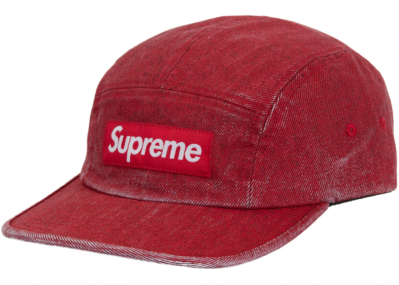 The Supreme Coated Denim Camp Cap Red is now available at Side Kicks!