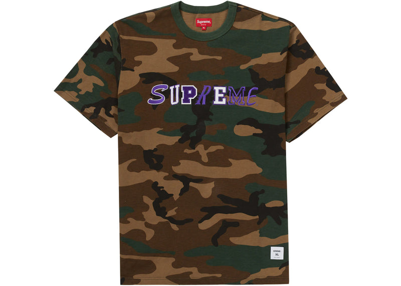 The Supreme Collage Logo S/S Top Woodland Camo is now available at Side Kicks!