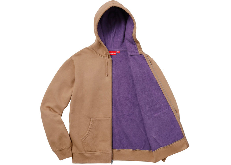Supreme Contrast Zip Up Hooded Sweatshirt Light Brown