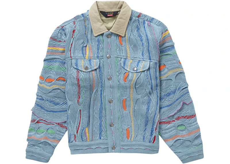 The Supreme Coogi Trucker Jacket Blue is now available at Side Kicks!