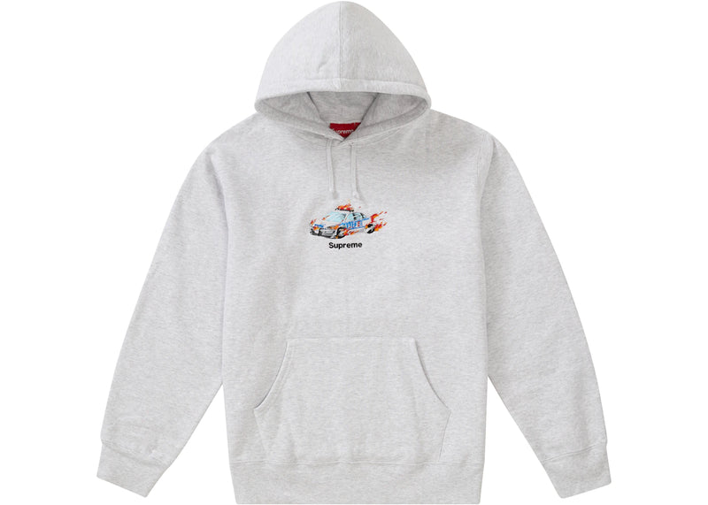 The Supreme Cop Car Hooded Sweatshirt Ash Grey is now available at Side Kicks!