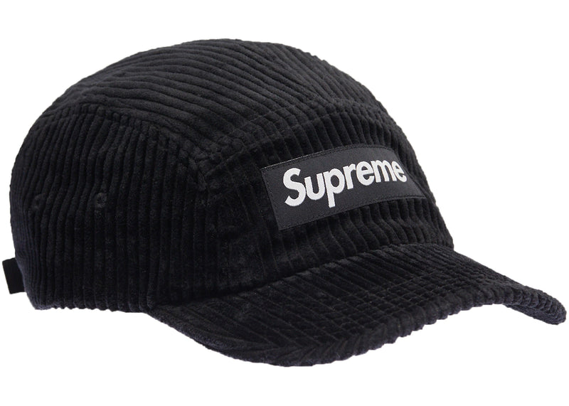 The Supreme Corduroy Camp Cap Cap (SS22) Black is now available at Side Kicks!