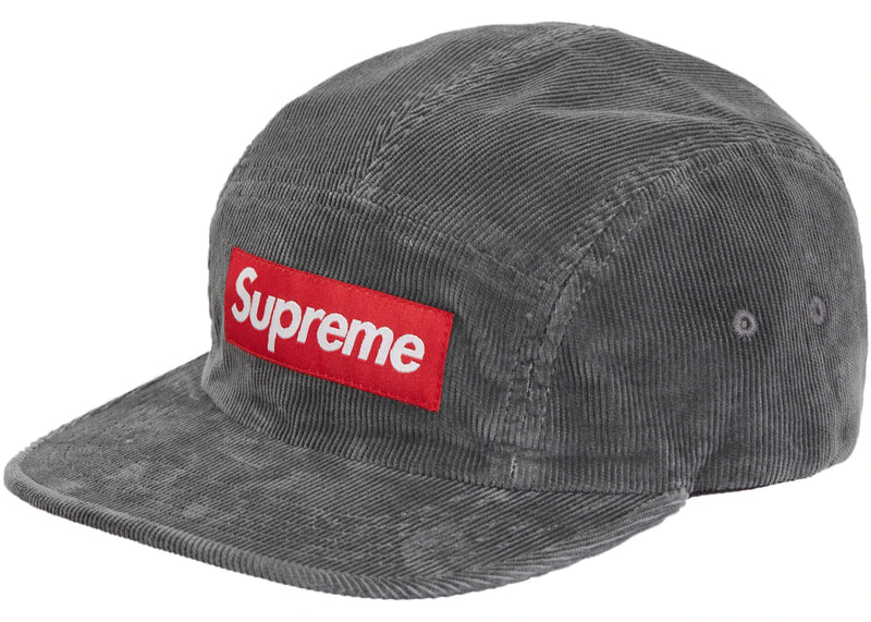 The Supreme Corduroy Camp Cap (FW23) Grey is now available at Side Kicks!