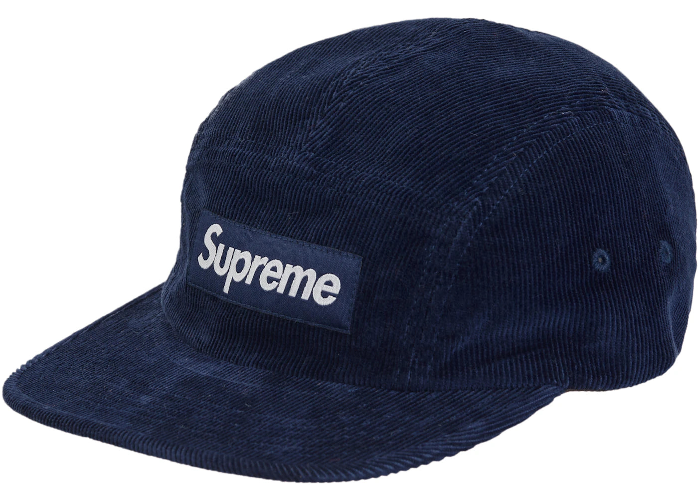 The Supreme Corduroy Camp Cap (FW23) Navy is now available at Side Kicks!