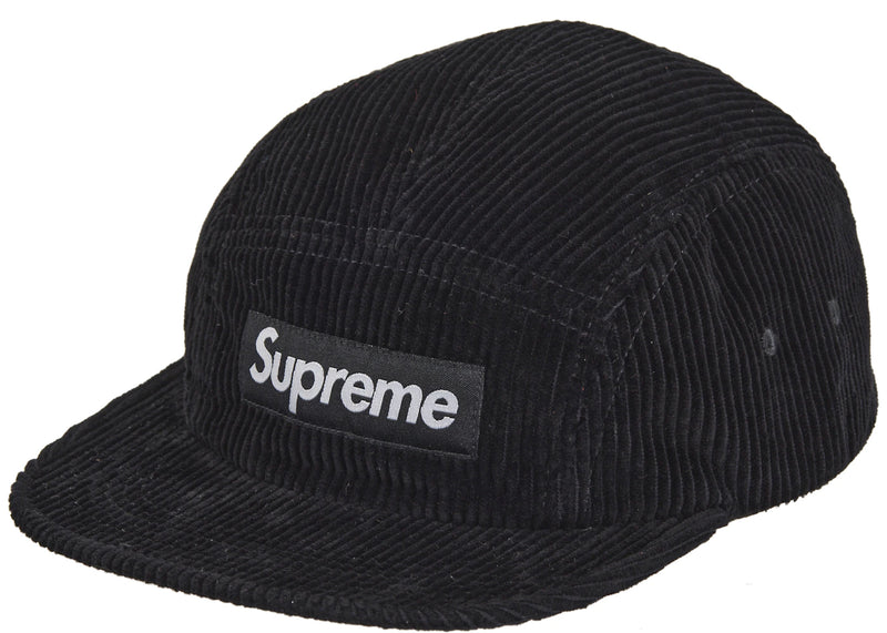 The Supreme Corduroy Camp Cap (FW24) Black is now available at Side Kicks!