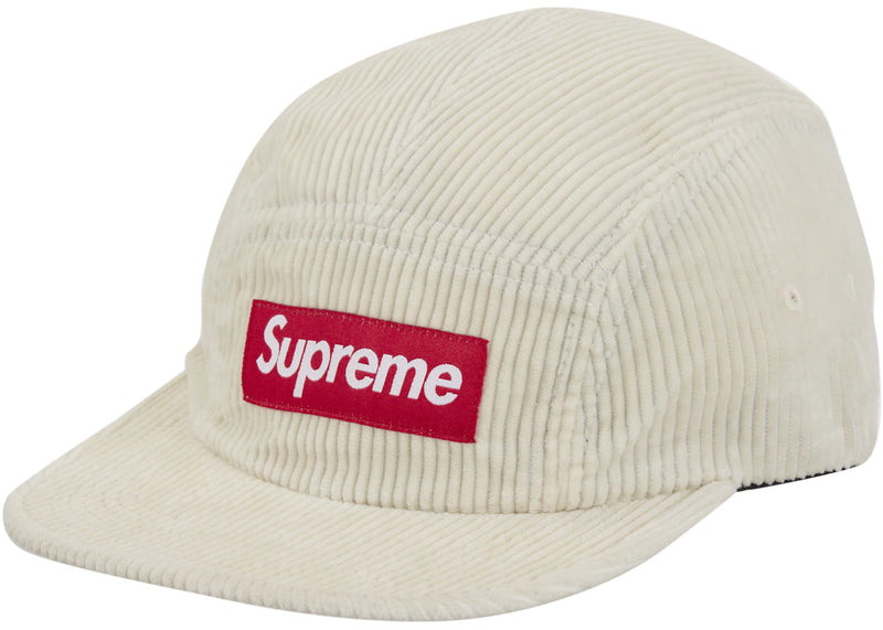 The Supreme Corduroy Camp Cap (FW24) White is now available at Side Kicks!