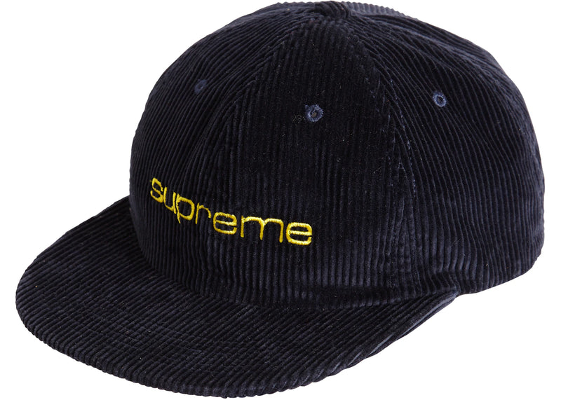 The Supreme Corduroy Compact Logo 6 panel Navy is now available at Side Kicks!