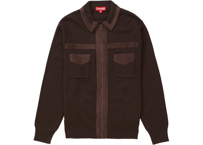 The Supreme Corduroy Detailed Zip Sweater Brown is now available at Side Kicks!