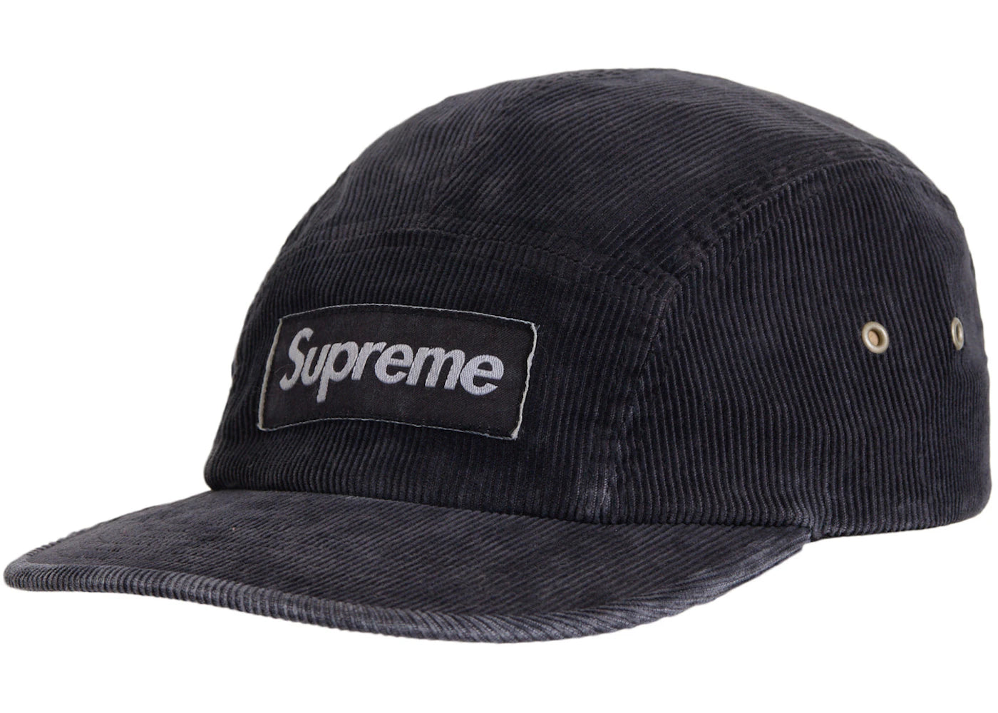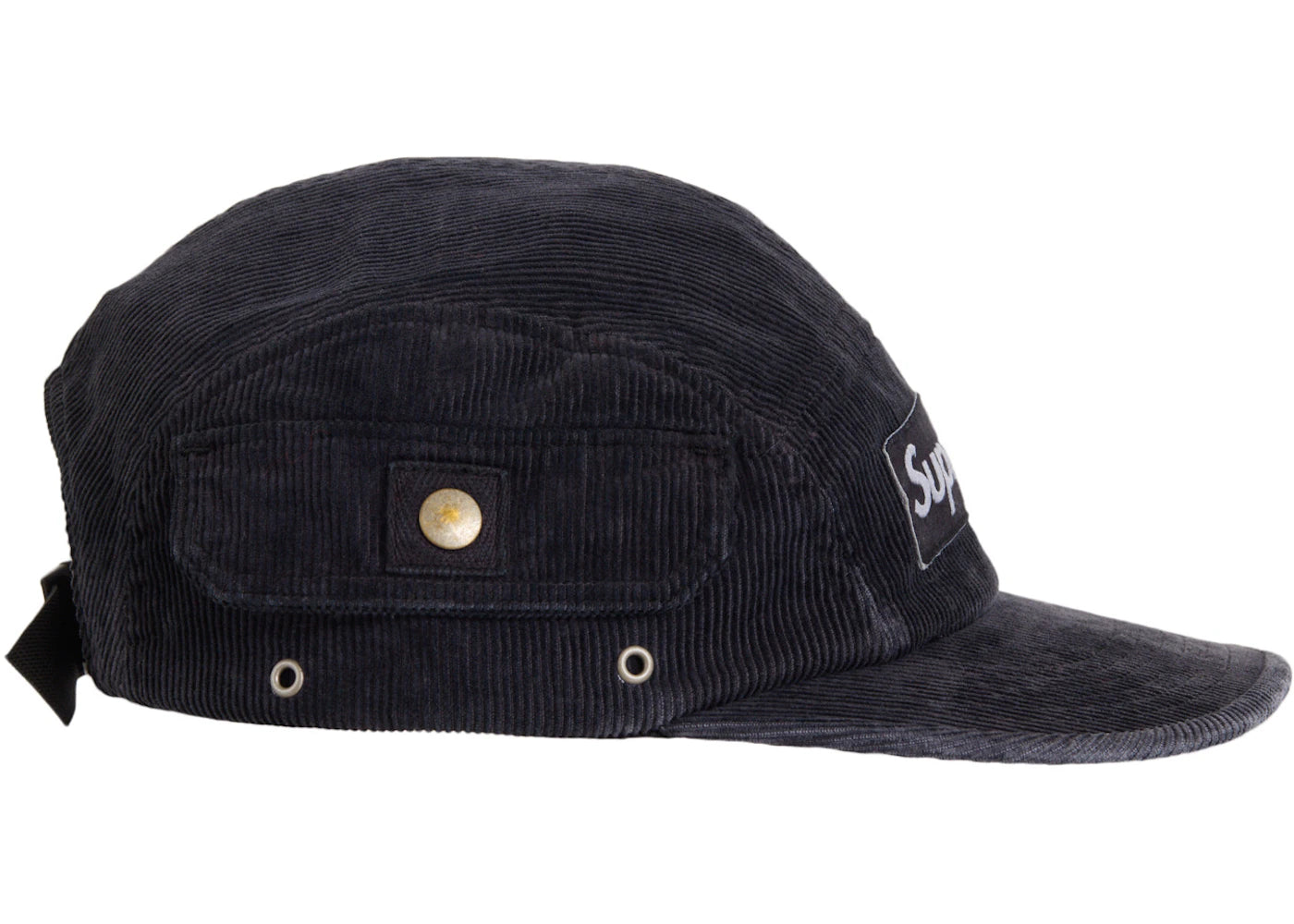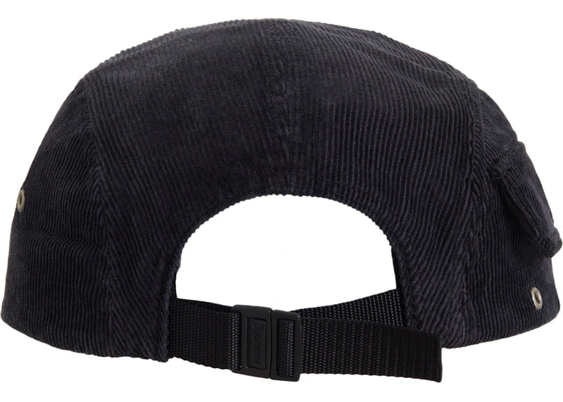 The Supreme Corduroy Pocket Camp Cap Black is now available at Side Kicks!