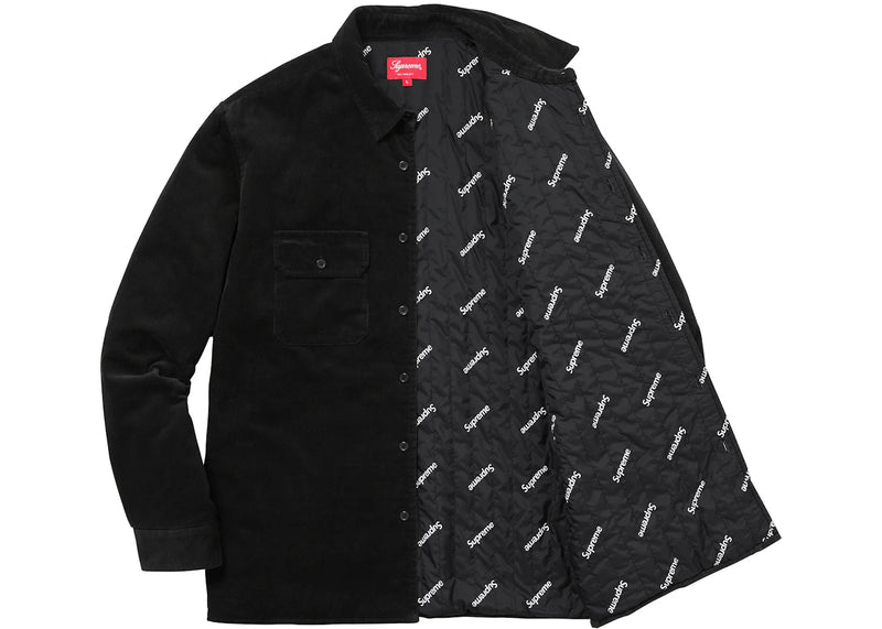 The Supreme Corduroy Quilted Shirt Black is now available at Side Kicks!