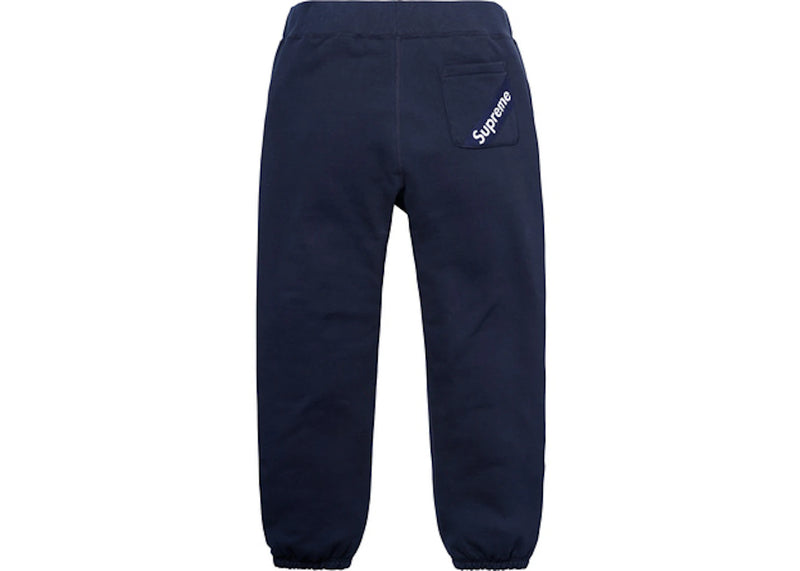 The Supreme Corner Label Sweatpant Navy is now available at Side Kicks!