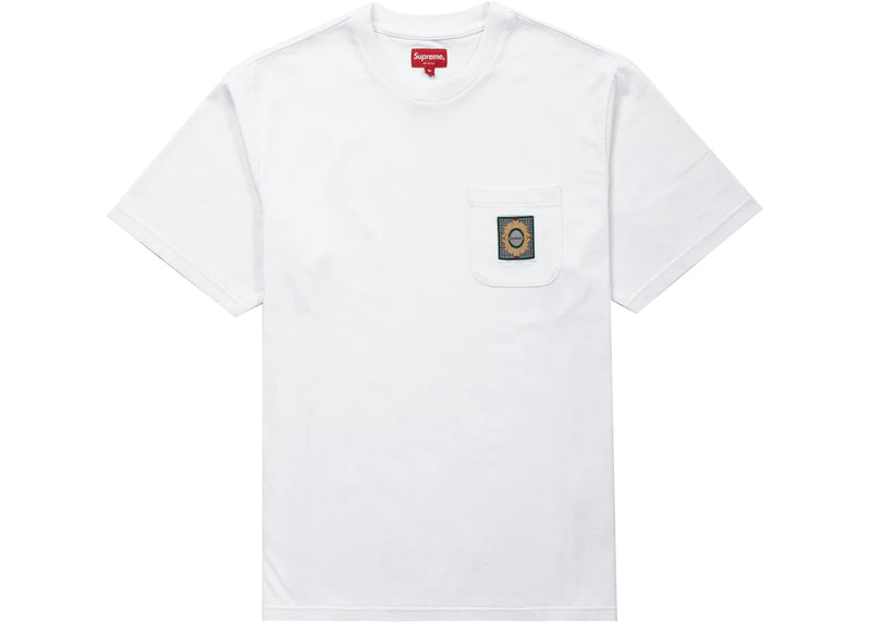 The Supreme Crest Label Pocket Tee White is now available at Side Kicks!