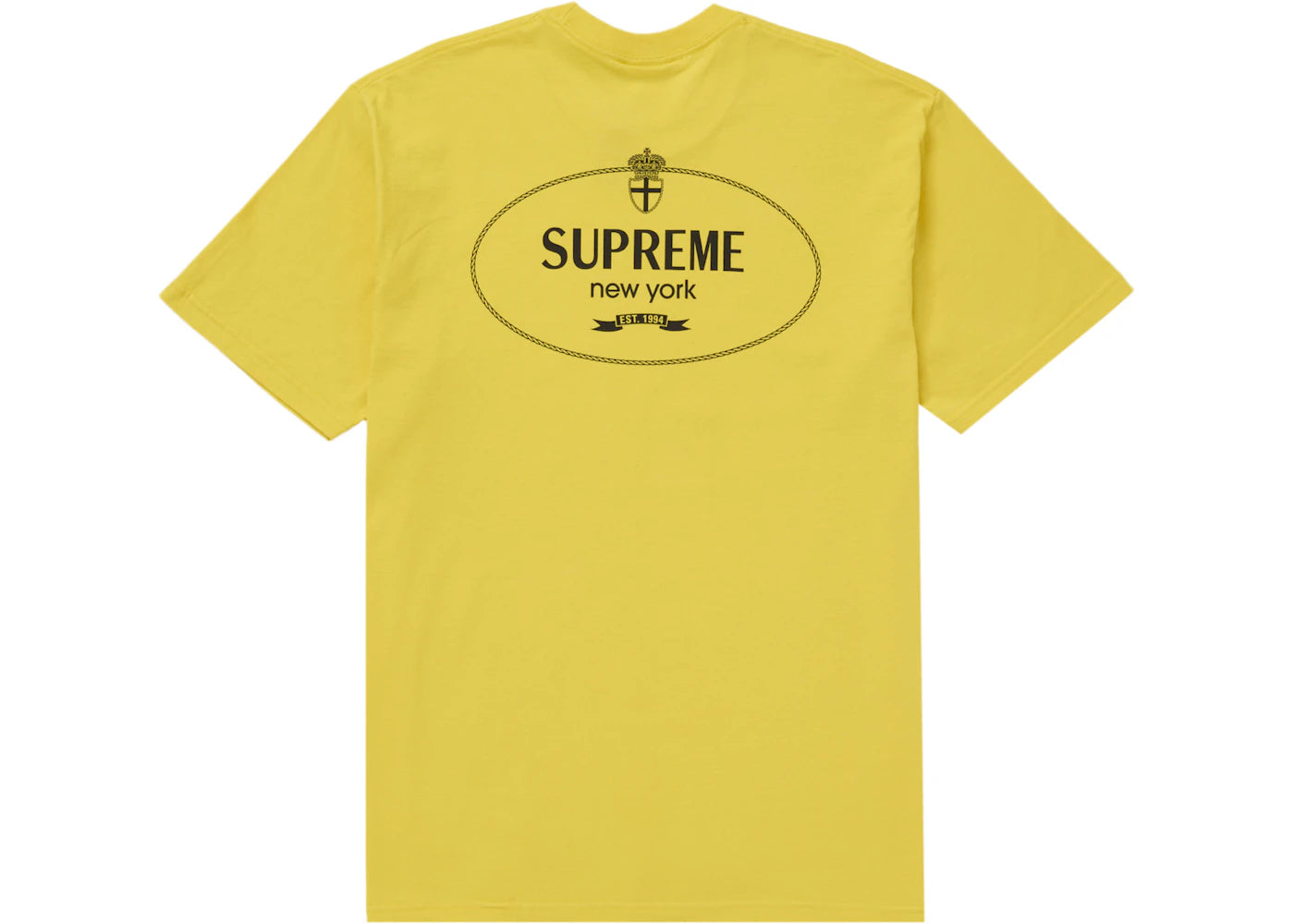 The Supreme Crest Tee (FW24) Yellow is now available at Side Kicks!