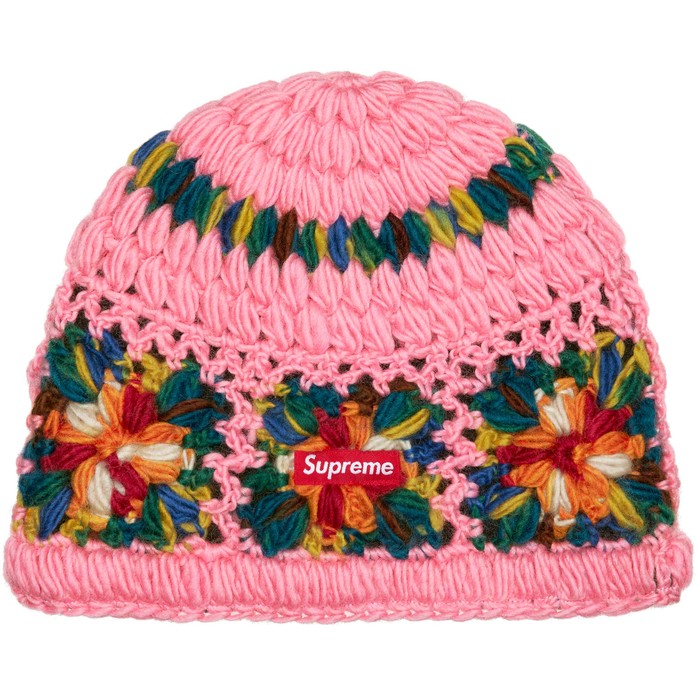 The Supreme Crochet Beanie - Pink is now available at Side Kicks!