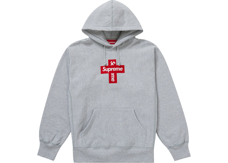 The Supreme Cross Box Logo Hooded Sweatshirt Heather Grey is now available at Side Kicks!