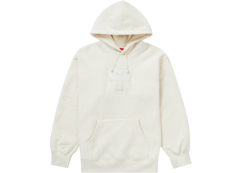 The Supreme Cross Box Logo Hooded Sweatshirt Natural is now available at Side Kicks!