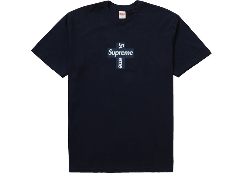 The Supreme Cross Box Logo Tee Navy is now available at Side Kicks!