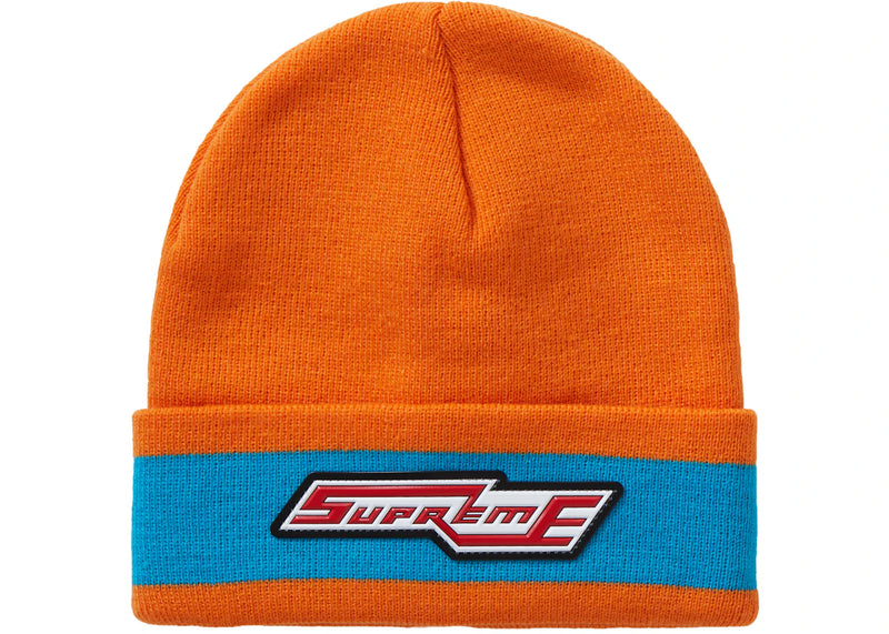 The Supreme Mohair Beanie (FW20) Tiger Stripe features an orange knit with black tiger stripes in a soft jersey-style mohair. A fold-up cuff displays the Supreme black box logo in...
