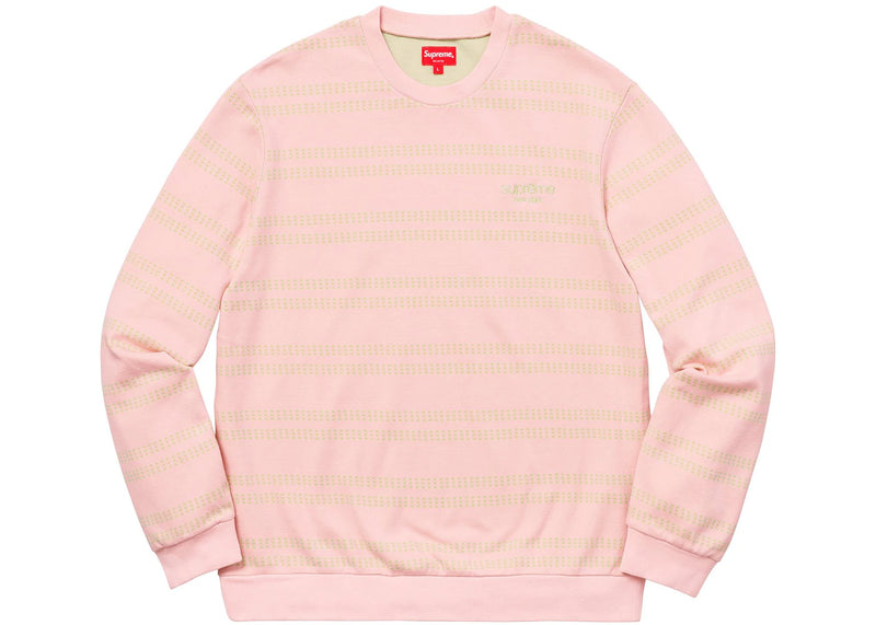 The Supreme Dash Stripe Crewneck Pink is now available at Side Kicks!