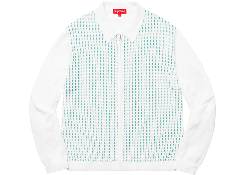 The Supreme Dashes Zip Up Knit Polo White is now available at Side Kicks!