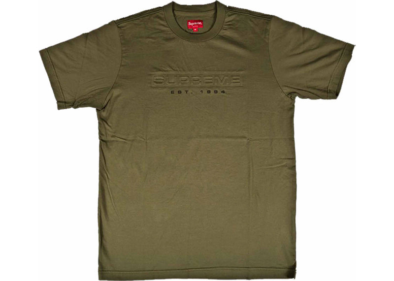 The Supreme Debossed Tee Olive is now available at Side Kicks!