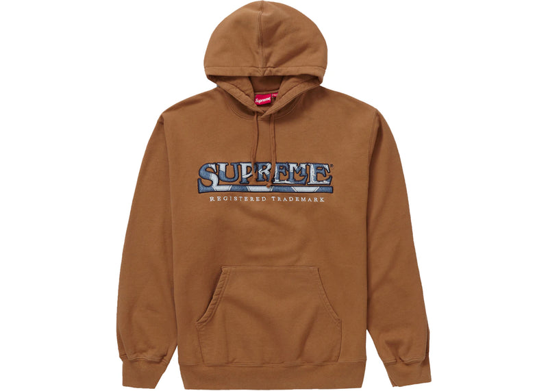 The Supreme Denim Logo Hooded Sweatshirt Brown is now available at Side Kicks!