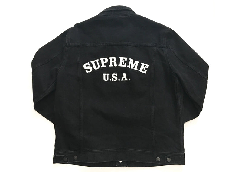 The Supreme Denim Trucker Jacket Black is now available at Side Kicks!