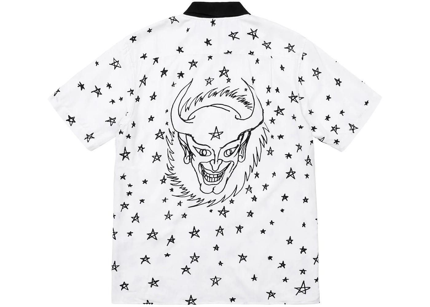 The Supreme Devil Rayon Shirt White is now available at Side Kicks!