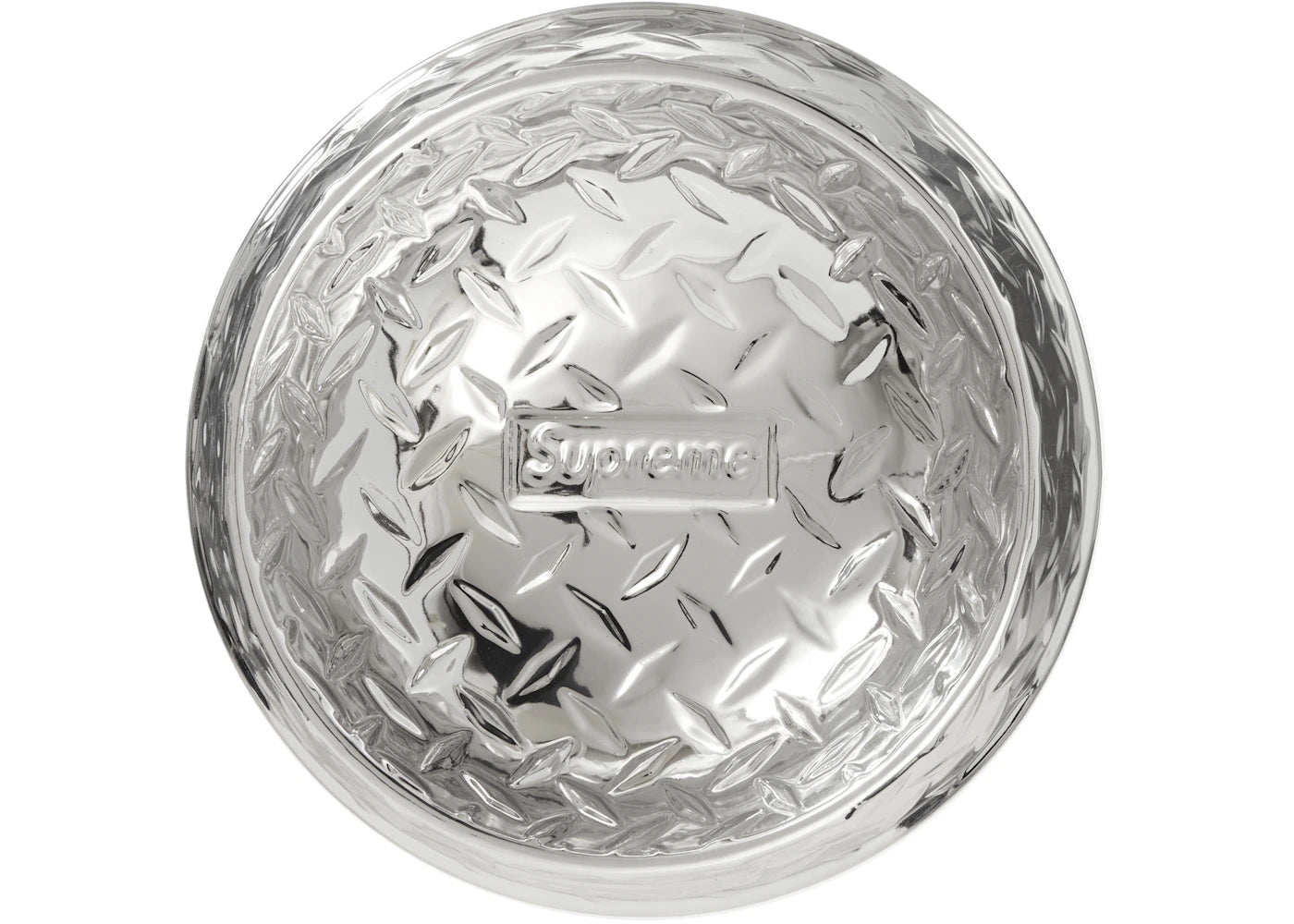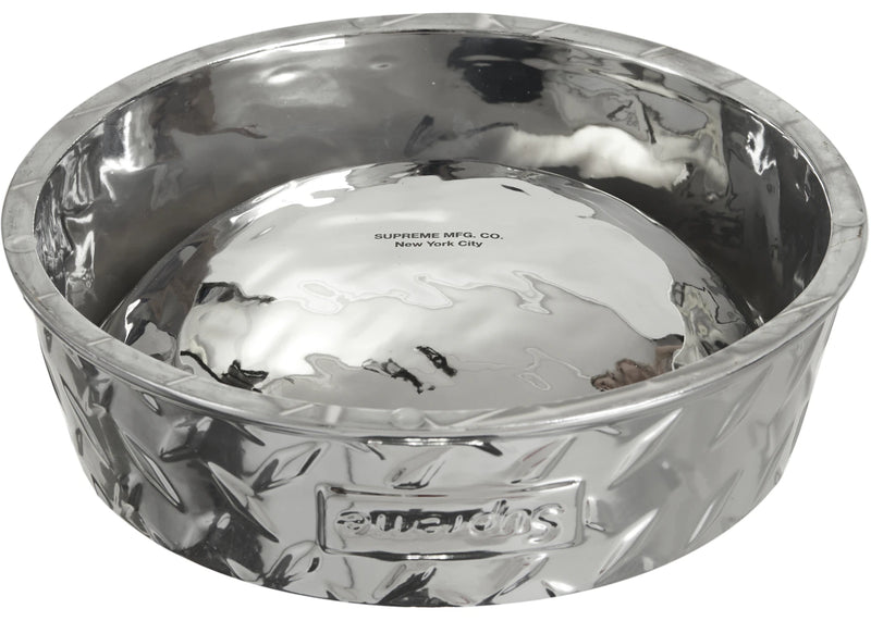 The Supreme Diamond Plate Dog Bowl Silver is now available at Side Kicks!