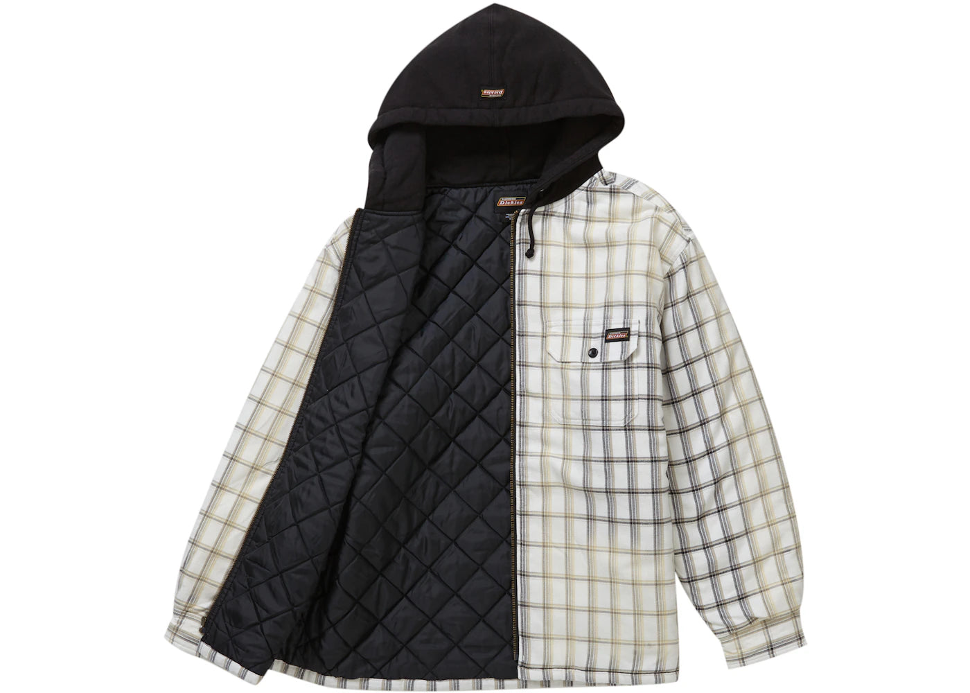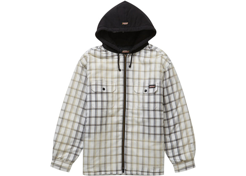 The Supreme Dickies Plaid Hooded Zip Up Shirt White is now available at Side Kicks!