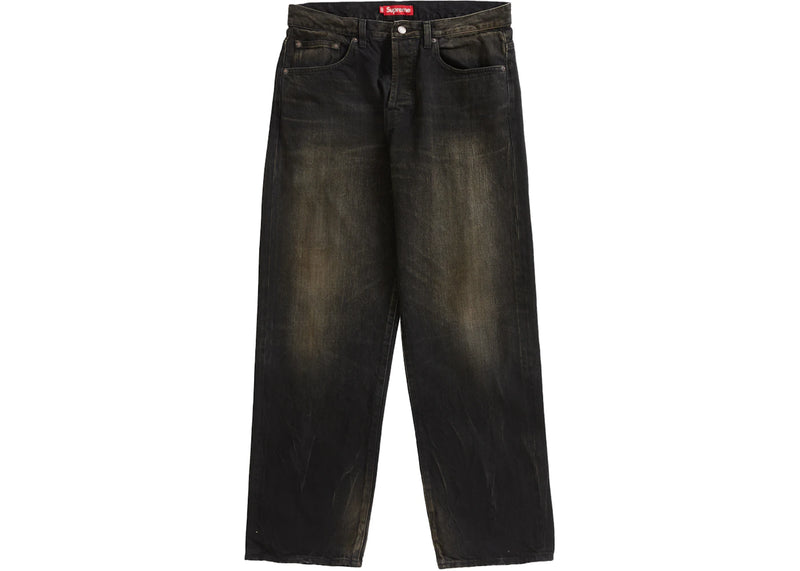 Supreme Distressed Loose Fit Selvedge Jean Washed Black
