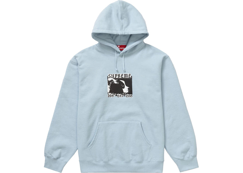 The Supreme Dog Eat Dog Hooded Sweatshirt Light Blue is now available at Side Kicks!