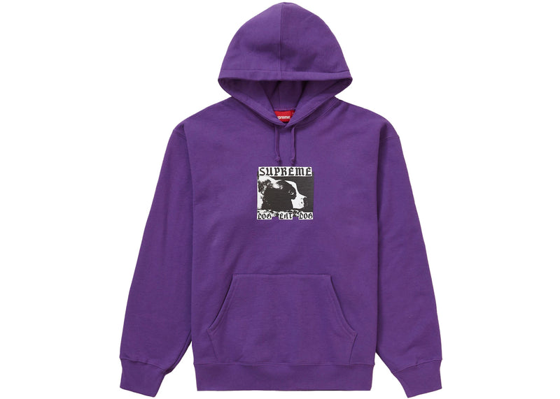 The Supreme Dog Eat Dog Hooded Sweatshirt Purple is now available at Side Kicks!