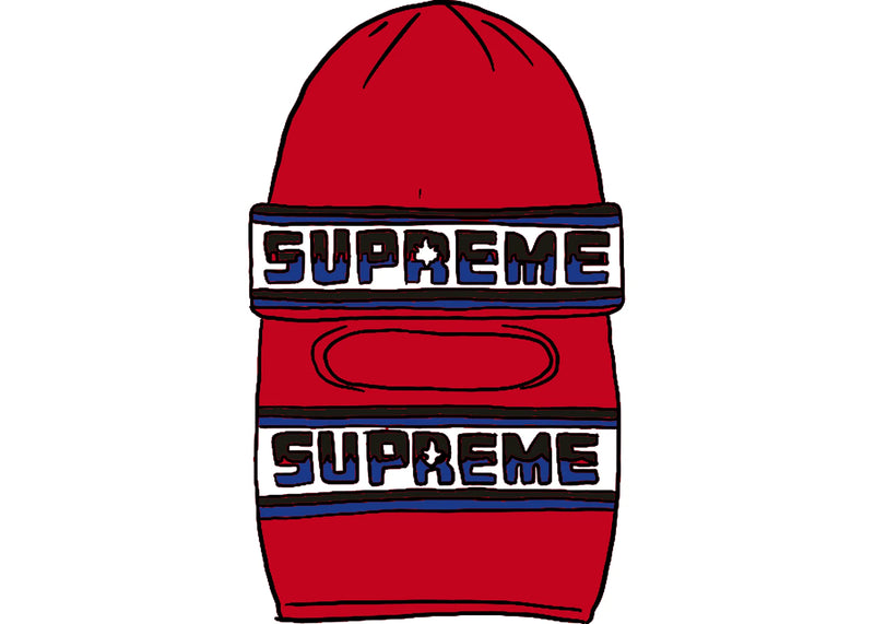 The Supreme Double Logo Facemask Beanie Red is now available at Side Kicks!
