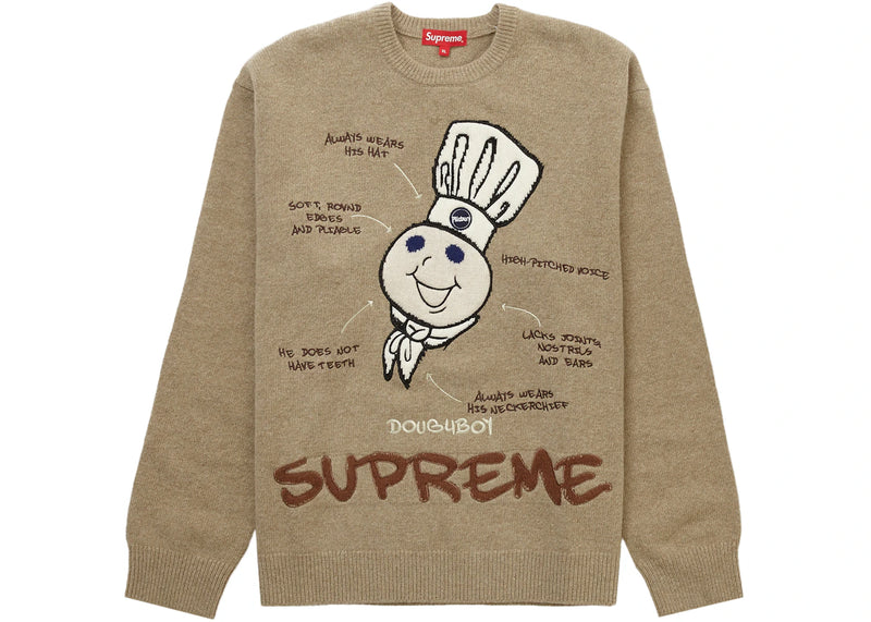 The Supreme Doughboy Sweater Beige is now available at Side Kicks!