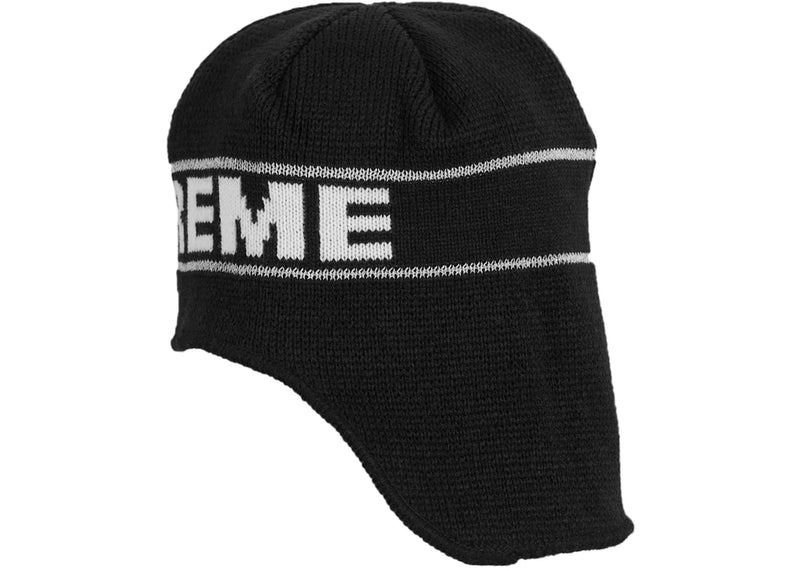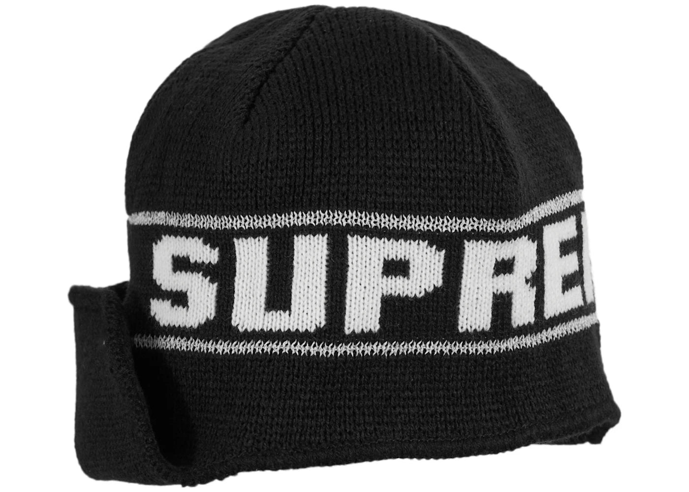 The Supreme Earflap Beanie Black is now available at Side Kicks!