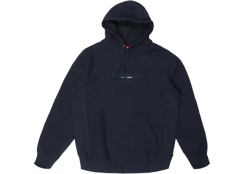The Supreme Embossed Logo Hooded Sweatshirt (SS18) Navy is now available at Side Kicks!
