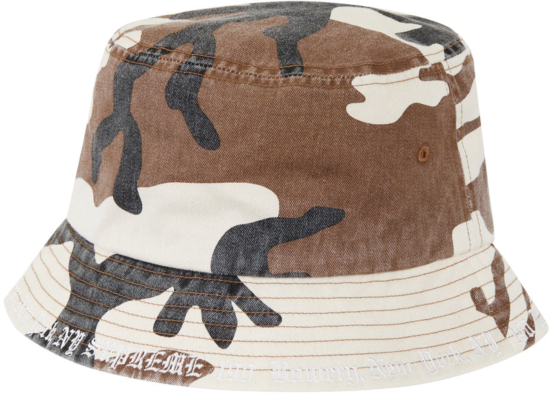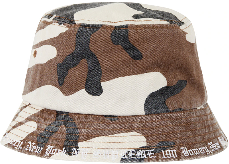 The Supreme Embroidered Brim Crusher Brown Camo is now available at Side Kicks!
