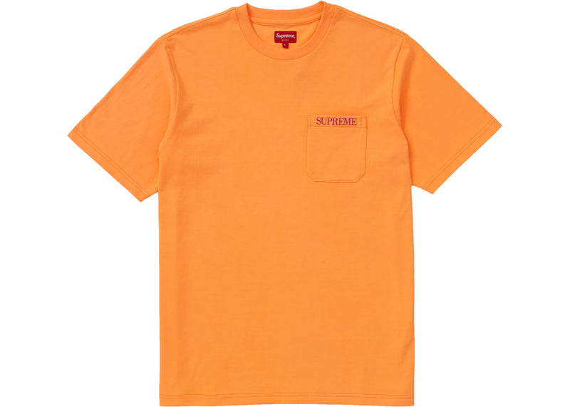 The Supreme Embroidered Pocket Tee Fluorescent Orange is now available at Side Kicks!