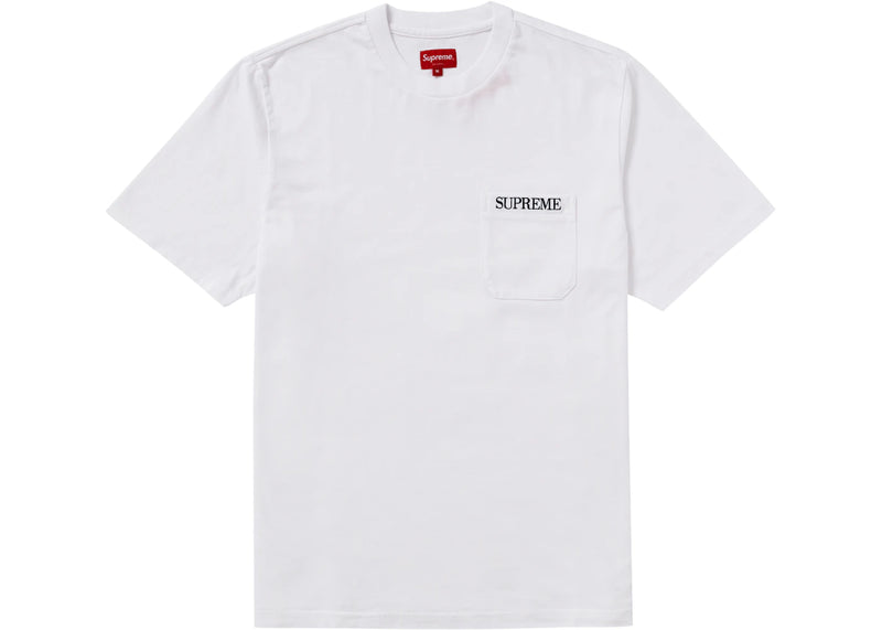 The Supreme Embroidered Pocket Tee White is now available at Side Kicks!