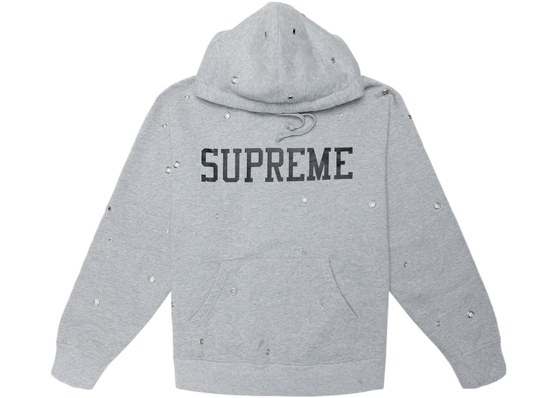 The Supreme Eyelet Hooded Sweatshirt Heather Grey is now available at Side Kicks!