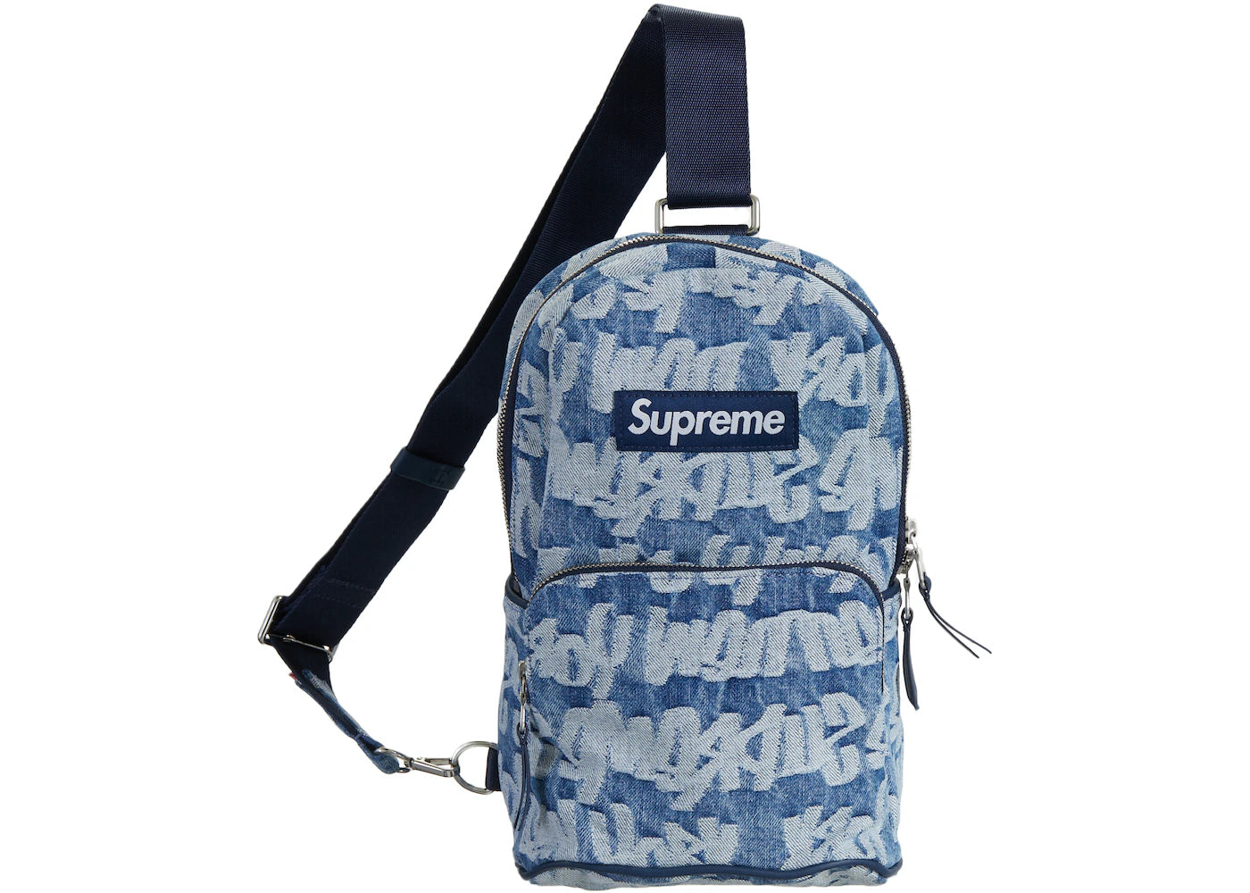 Supreme Fat Tip Jacquard Denim Sling Bag Blue