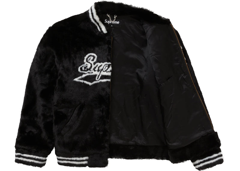 Supreme Faux Fur Varsity Jacket Black