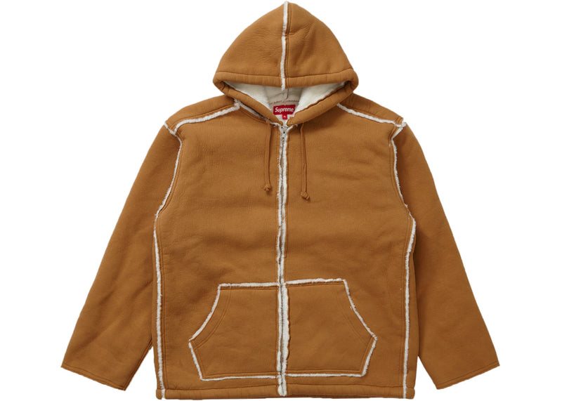 The Supreme Faux Shearling Hooded Jacket Tan is now available at Side Kicks!