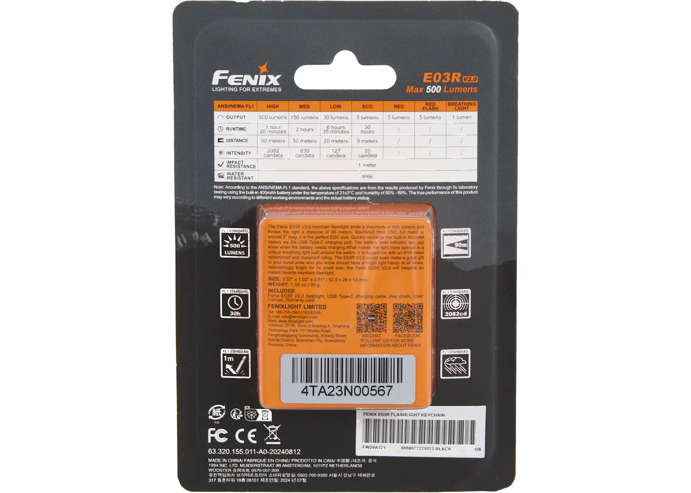 The Supreme Fenix E03R Flashlight Keychain Black is now available at Side Kicks!