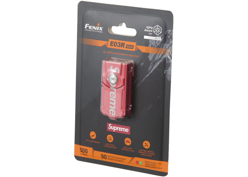 The Supreme Fenix E03R Flashlight Keychain Red is now available at Side Kicks!
