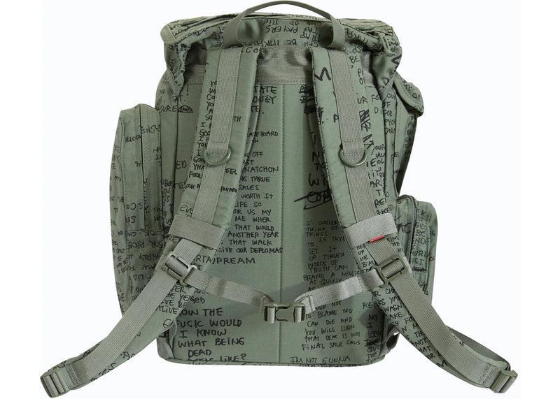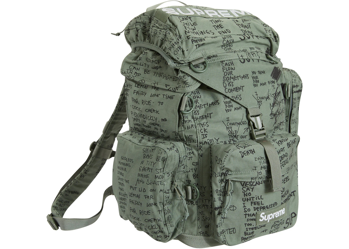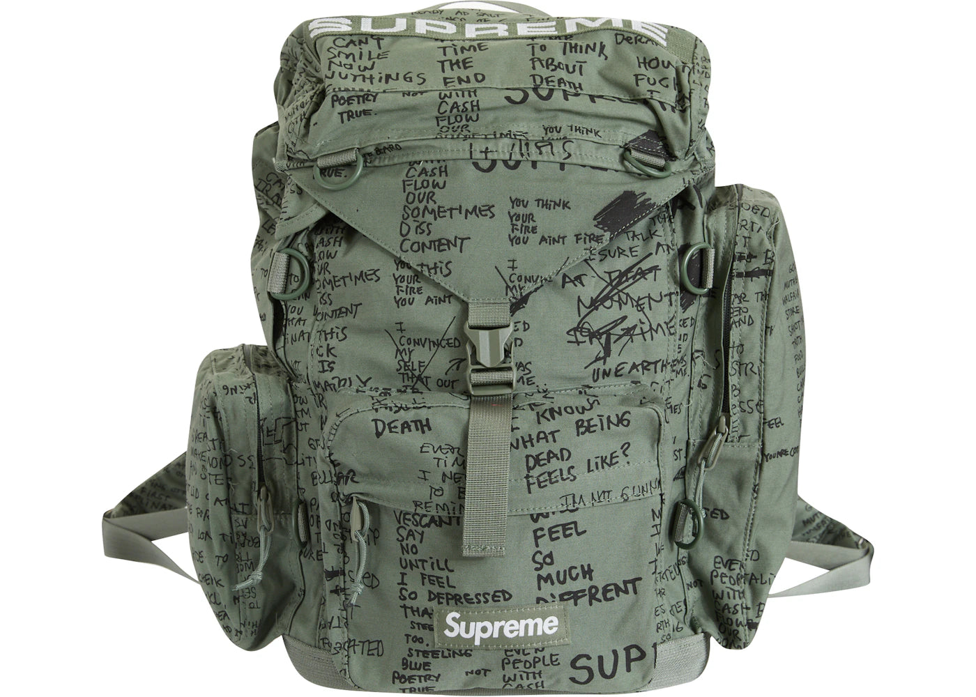 The Supreme Field Backpack Olive Gonz is now available at Side Kicks!