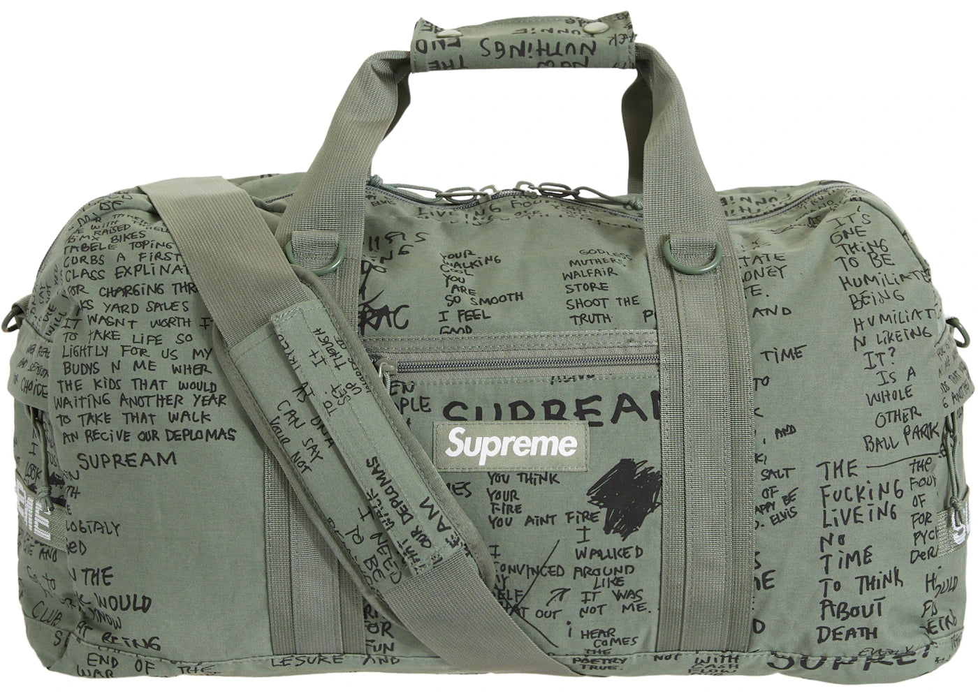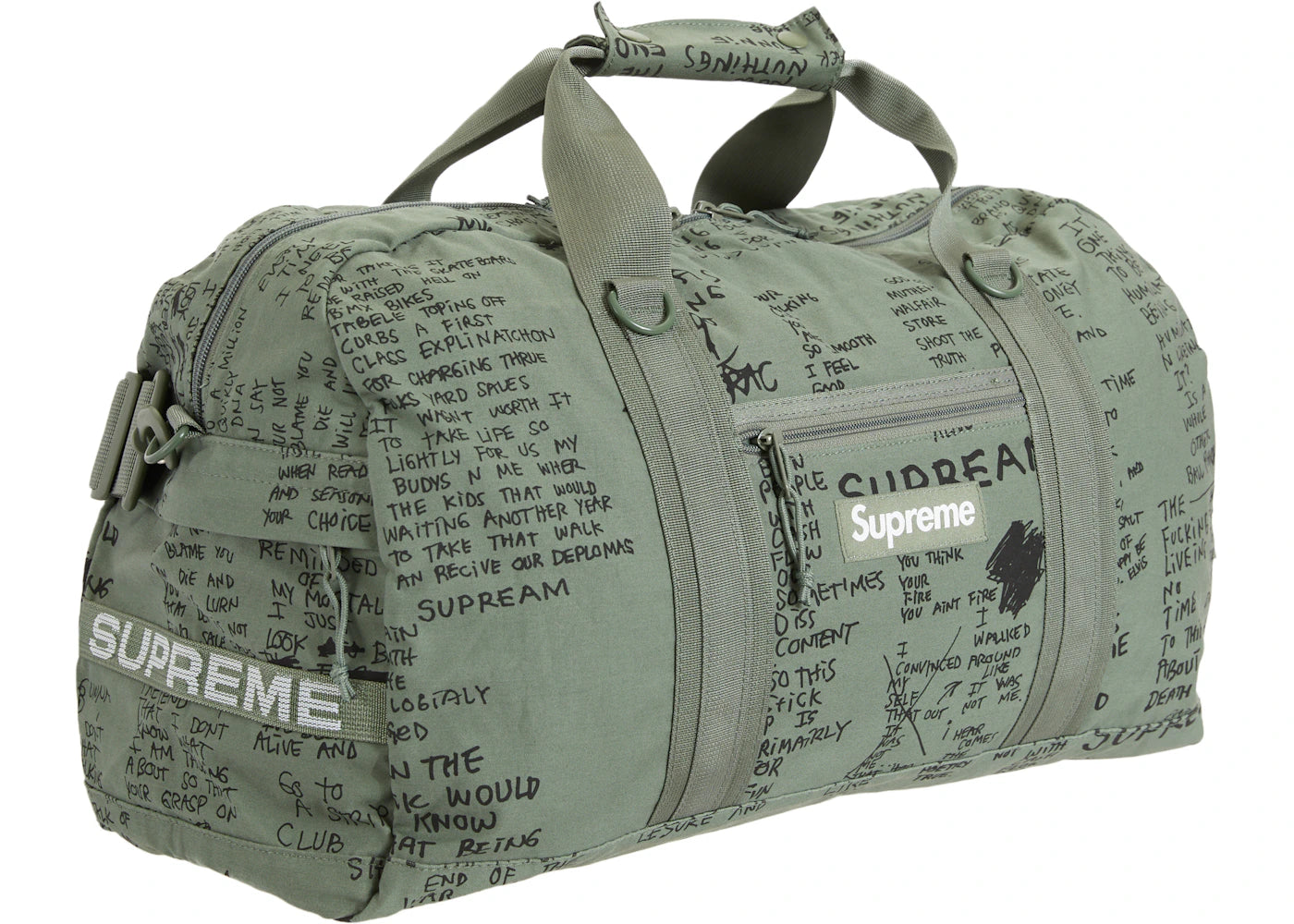 The Supreme Field Duffle Bag Olive Gonz is now available at Side Kicks!