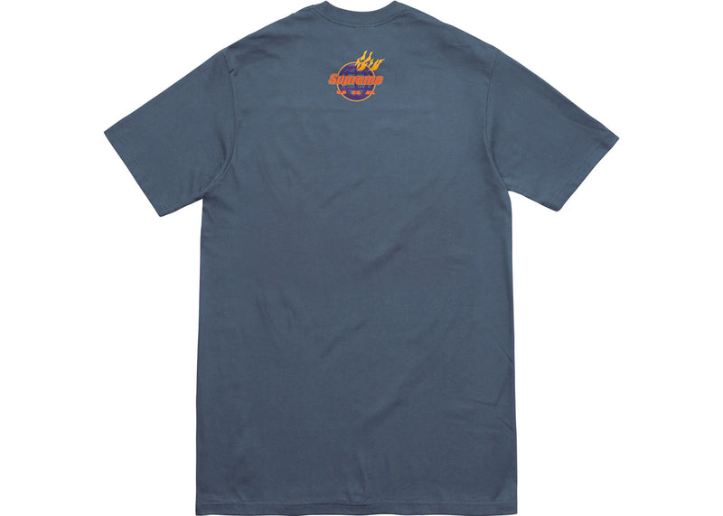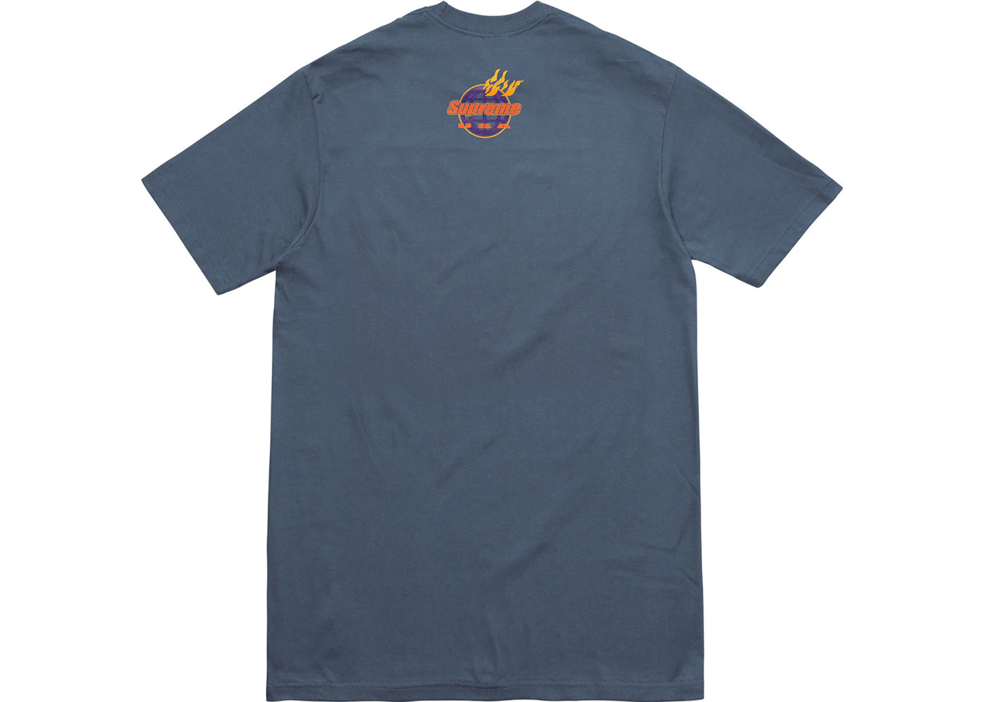 The Supreme Fire Tee Dark Slate is now available at Side Kicks!