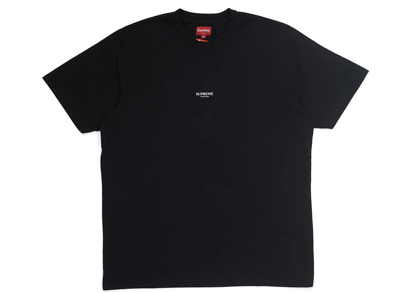 The Supreme First & Best Tee Black is a black short-sleeve cotton jersey tee from the Fall-Winter 2018 collection. It features a crew neck, short sleeves, and subtle white Supreme...